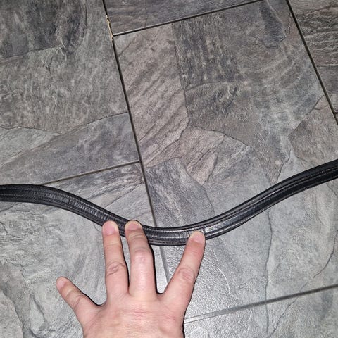 Selger to stykk Ps of Sweden pannereimer i str full, sort lær.