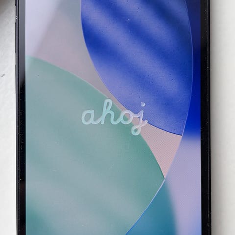 Modellen er blå og har med et blått deksel og ny skjermbeskyttelse.