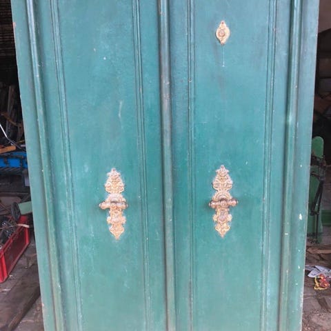 Solid utførelse med kraftig dør og låsemekanisme. Trolig fra slutten av 1800-tallet eller tidlig 1900-tall.