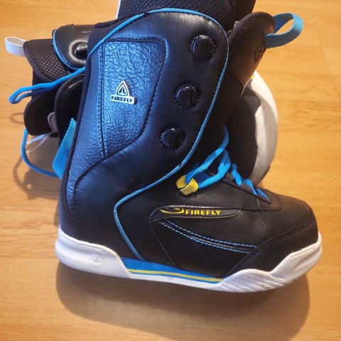 Firefly snowboardstøvler for barn i størrelse EU 33 (UK 1, MONDO 21,0). Støvlene er i svart med blå detaljer og blå lisser. Yttermateriale i syntetisk materiale med gummisåle. Innvendig uttakbar innerstøvel i tekstil med snøring for bedre passform og støtte. Egnet til bruk på snowboard for barn i aktuell skostørrelse.