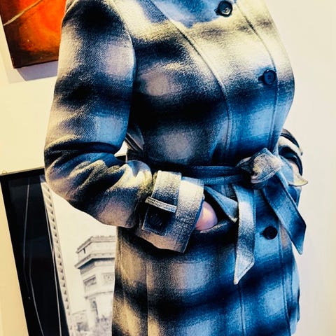 Fik kåpe,jakke fra Orsay i str.38 liten 38 passer mer en 36,i fargen grå og offwhite/hvit.