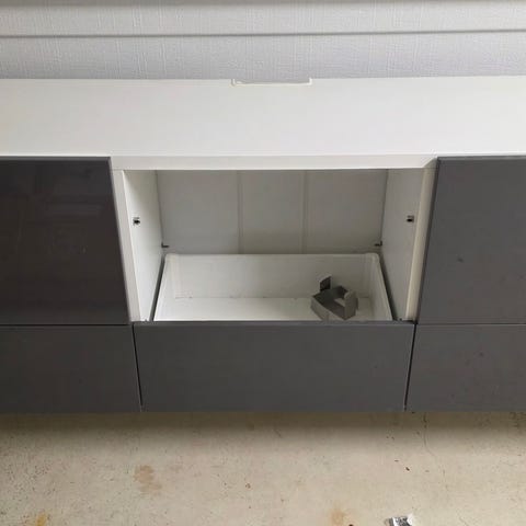Den har romslig oppbevaring med både skap og skuffer, perfekt til TV-utstyr, spillkonsoller, kabler eller annet du ønsker å rydde bort. Overflaten på toppen er slitesterk og lett å holde ren.