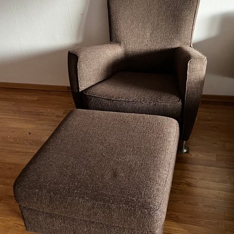 Godt brukt, men blir fin m kjapp runde m klut. Fortsatt drittøff og god å sitte i. Ikke tung, lett å få med seg.