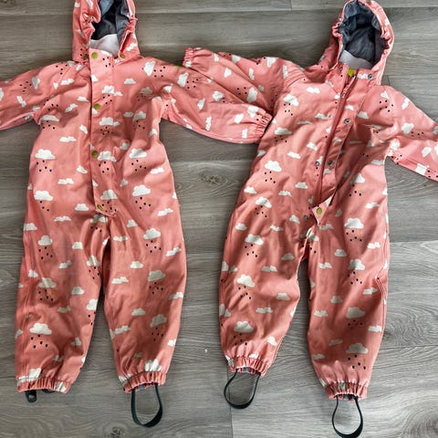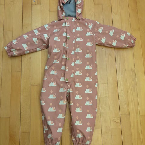 Kattnakken regndress for barn i størrelse 92. Regndressen er rosa med mønster og laget i polyester. Modellen er unisex og har hette, glidelås foran med trykknapper, elastikk ved ermer og ben samt fotstrikker. Innsiden har glatt fôr. Passer til bruk i vått vær og utelek for barn rundt 92 cm.