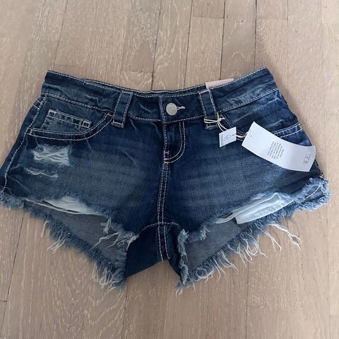 Gina Tricot denimshorts young 14+ i størrelse S. Shortsen er i blå denim med lys vask og har en kort modell.