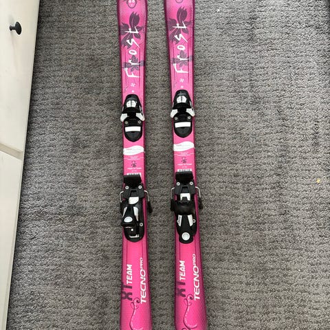UTLEIE- Barneski med alpinstøvler og bindinger i lengde 76 cm leies ut via HYGGLO. Sko i ca str 25, men skiene kan påjusteres andre sko.