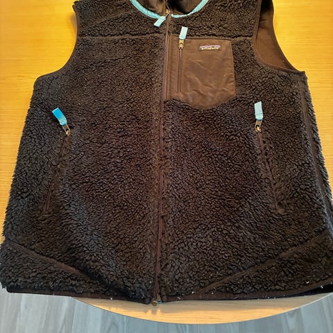 Pent brukt vest fra Patagonia selges, mulig å vrenge vesten slik at du kan bruke den begge veier.