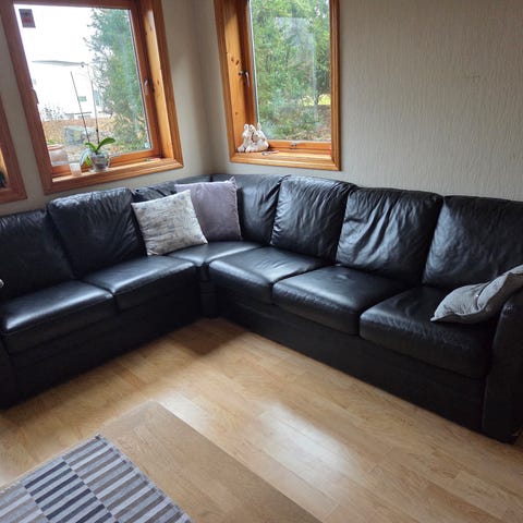 2 + 3 seter i svart / sort skinn frå Hjellegjerde.