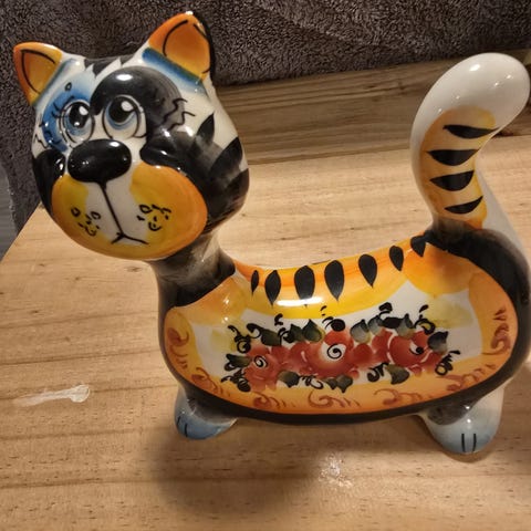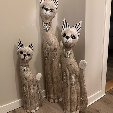 Håndlaget kattestatue i tre