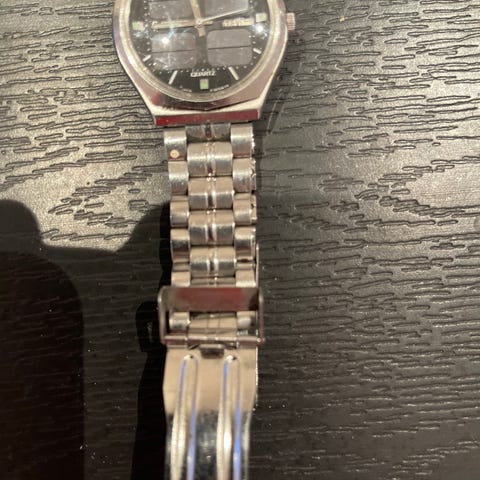 Pent brukt klokke som jeg har moddet selv, sort urskive med «wavy» detaljer som skal simulere årringer. Selges fordi jeg har for mange klokker og bruker den sjeldent.