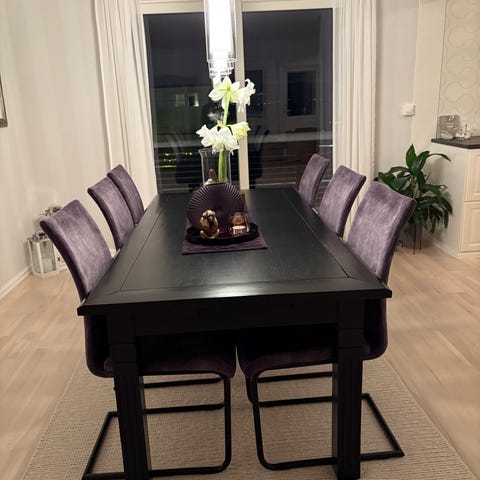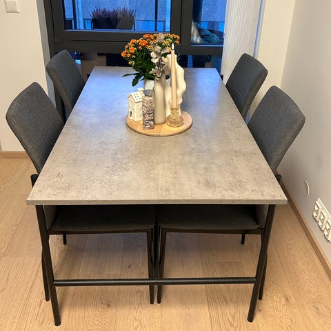 Ved henting: 2-3 stk må være med på henting. Toppplata på spisebordet er fryktelig tungt og jeg kan ikke hjelpe med bæring av akkurat det, men andre deler er jeg behjelplig med.