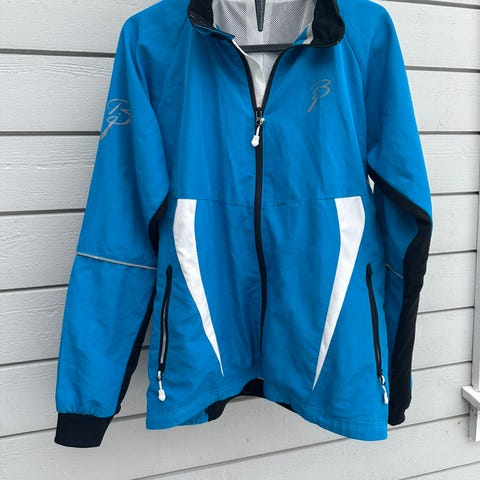 Pent brukt jakke for langrenn eller annen aktivitet. Refleksdetaljer på ermer og meshforet. Liten flekk på ryggen.