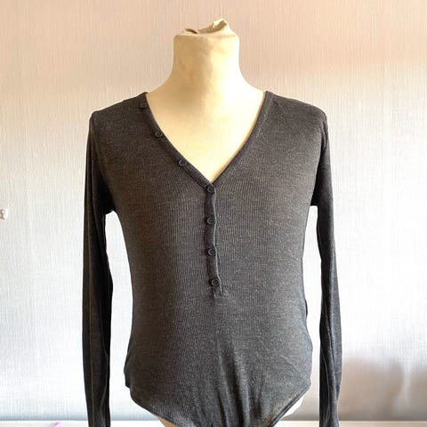 🔎 Søkeord: H&M body dame, ribbestrikk body, sort body høy hals, minimalistisk topp, basic body, capsule wardrobe, trendy baseplagg, dameklær L, party topp, everyday basic