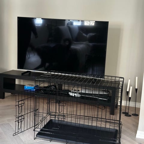 Sammenleggbart hundebur i metall. Buret har gitterkonstruksjon og avtagbar bunn som gjør det enkelt å rengjøre. Egnet som hvileplass eller transportbur for hund. Kan slås sammen for enklere lagring når det ikke er i bruk. Pute medfølger