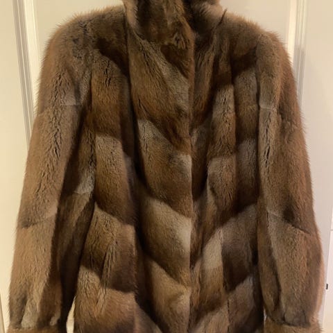 Ekte pels for dame i størrelse M. Jakken har klassisk krage og lukkes foran. Lengden går til rundt hoftepartiet, og passformen fremstår som normal. Ytterjakken passer som et varmere lag på kjølige dager og kan brukes både til hverdags og mer pyntede anledninger.
