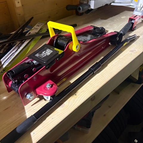 Garasjejekken fra Meec Tools er en hydraulisk jekk for løfting av bil ved dekkskift og enklere vedlikehold.