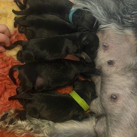 Chloe fødte 6 vakre chihuahua valper 15 februar ,de kom som perler på en snor uten noe komplikasjoner.Fem jenter og en gutt med vakre sjokolade farger ,de er livsterke alle 6. Vi har både mor og far her i flokken de er født her hjemme mor Chloe er langhår med lavendel farge far Cevin er korthåret sjokolade farge de er sjekket for patella uten anmerkning . Valpene vokser opp i et hjem med kjærlighet og omsorg blir sosialisert på voksne og småfolk og med andre hunder og katter ,vi har dem med oss i forskjellige settinger . Hvis man ønsker å reservere en valp betaler man et depositum på 4000 kr som trekkes fra kjøpesummen ,dersom man trekker seg fra avtalen betales ikke depositumet tilbake .Valpene leveres med helseattest ,helsebok ,vaksine,chipp,og pass,det følger med tørrfôr 3 kg og vom 2,5 kg,teppe og leker fra valpekassen . Valpene blir ikke registrert hos NKK .Kontakt meg gjerne for en fin hunde prat på 97589344,valpene leveres når de er ca 10 uker