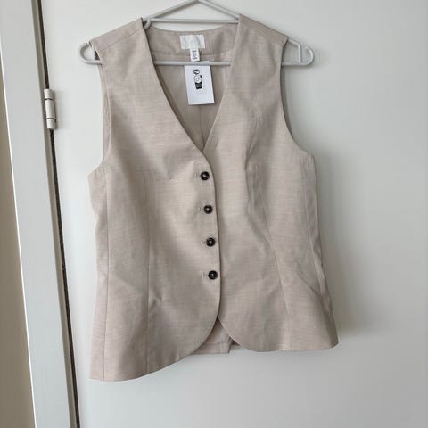 Linen waistcoat fra FWSS i størrelse L. Liten i størrelsen. 55 prosent lin og 45 prosent bomull. Kjempefin!