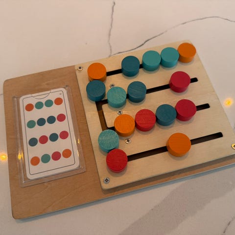 Kjempefint aktivitetsbrett som trener finmotorikk og nysgjerrighet! Barna kan åpne og lukke ulike dører med forskjellige låser og oppdage søte dyr bak. Perfekt underholdning på flyturer, bilturer eller hjemme – når man vil unngå iPad 😊 Den er anbefalt fra 3+, men min datter på 10 mnd elsket den!