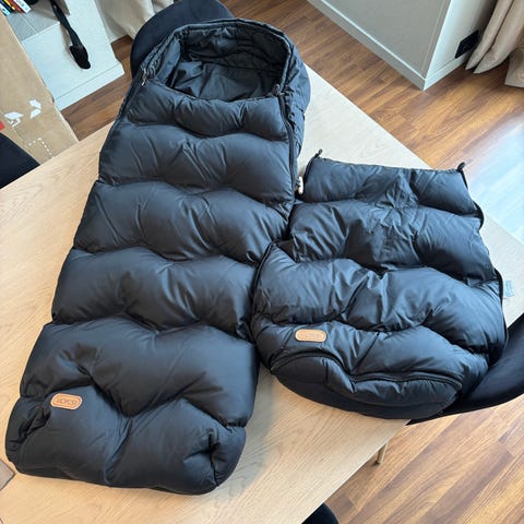 Pent brukt vognpose i dun fra Helledussen. Medfølger forlengerdel.