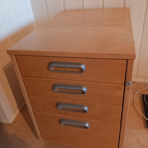 Kommode nr1 har en skade på front men er fult fungerende. Pris 400 kroner.