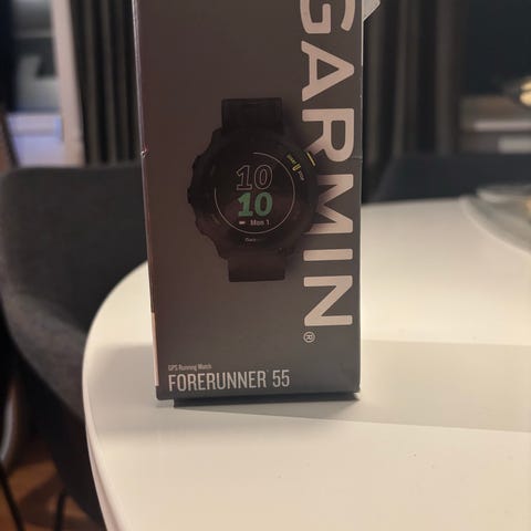 Garmin Forerunner 55 pulsklokke i svart. Kjøpt 17 februar 2025. GPS-basert treningsklokke med rund urskive. Klokken leveres med original eske, ladekabel og ekstra nylonreimer som vist på bildene. Egnet til løping, trening og hverdagsbruk, med funksjoner for aktivitetsmåling og varsler fra tilkoblet smarttelefon. Orginalreim følger ikke med, det sitter på 1 nylonreim.