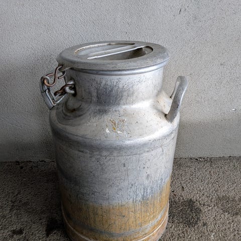 Svært gammelt melkespann.