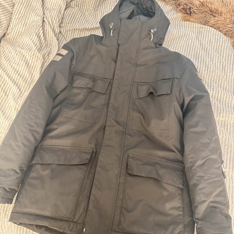 Russedress Parkas i størrelse XS for dame og herre. Jakken er svart og laget i polyester. Modellen har hette, flere lommer på bryst og sider. Også en stor glidelås lomme inni ryggen. Refleksdetaljer er plassert på ermer og rygg. Innsiden har vattert fôr i rutemønster for ekstra isolasjon. Nederst på ryggen er det borrelås hvor man kan feste sitt eget etternavn. Den er pent brukt ettersom jeg var en del syk i russetiden. Er to små hull inni som bildene viser, men enkelt å teipe igjen:)