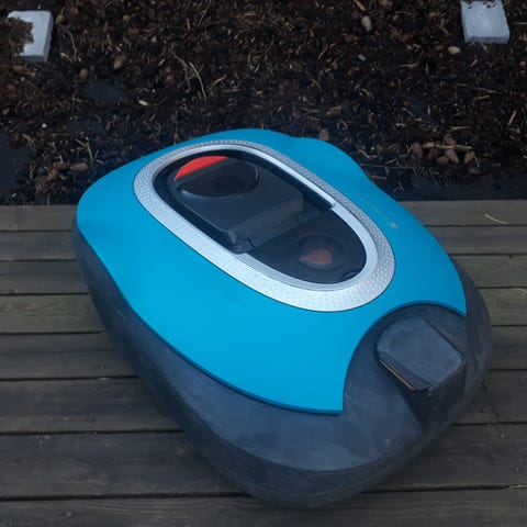 Gardena R70Li robotgressklipper i blå utførelse. Modellen er batteridrevet og er konstruert for automatisk klipping av plen innenfor et avgrenset område med kantkabel. Robotgressklipperen har display og betjeningspanel for innstilling av klippetider og andre funksjoner. Bildene viser også en Gardena R40Li ladestasjon/tilbehør som kan inngå i oppsettet. Egner seg til automatisk klipping av hageplen der det er lagt opp riktig installasjon med ladestasjon og begrensningskabel. Alle klippere selges som forevist uten garantier. Reperasjon må påregnes. Selges hele eller som deleklippere. Har ikke kodene lenger. Gi bud