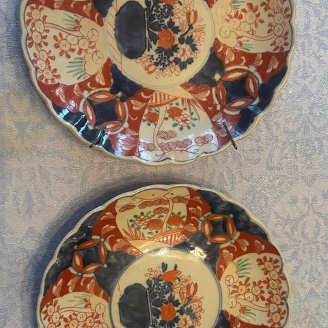 Antikt japansk Imari fat fra Meiji-perioden på slutten av 1800-tallet. Pent fat i god stand. Sirlig og delikat malt