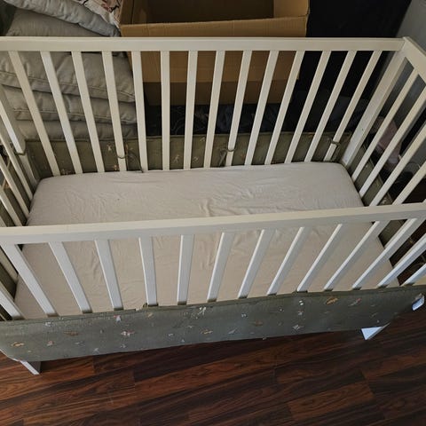 Selger ikea sprikelseng og stelle bord i samme stil. Seng selges med madrass og tisselaken+vanlig laken. I tillegg selges den med holder til ha å ha på kanten av sengen.