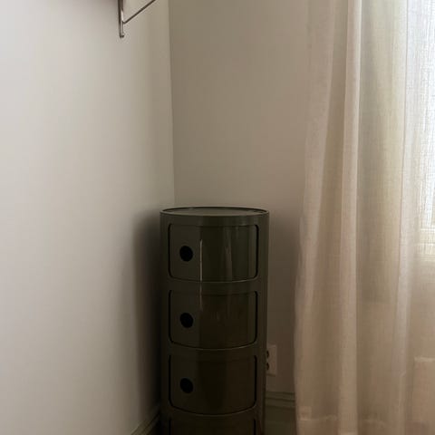 Selger et sjeldent Kartellmøbel. Det er en benk med speil på alle fire sider og på toppen. Har brukt det som tv-benk. I midten på platen på toppen er det mulig å føre opp ledninger til tv eller annet. Har opprinnelig blitt brukt i butikk for å vise fram Kartellamper.