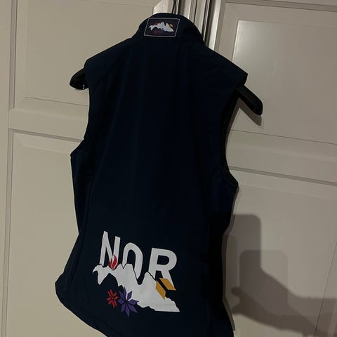 Hvit glidelås. Kostet ca 6000 ny. Brukt noen få ganger, da den ikke passet meg.