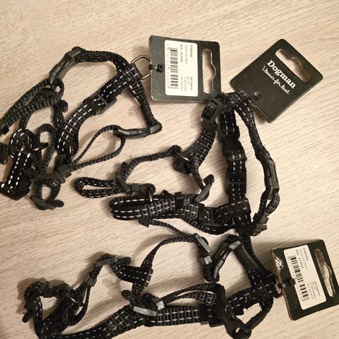 Justerbar H-sele, svart. Kan justeres rundt nakken, brystet, mellom forbeinene og over skulderbladene for perfekt passform. Passer til middelsstore hunder.