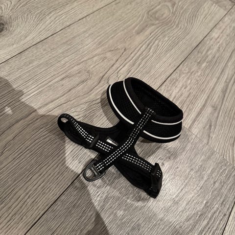 Justerbar H-sele, svart. Kan justeres rundt nakken, brystet, mellom forbeinene og over skulderbladene for perfekt passform.