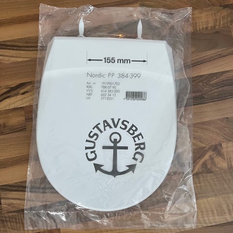 Gustavsberg Nordic toalettsete universalt selges billig, nytt og ubrukt i hardplast. Passet ikke hos oss, selges derfor videre. Avstand mellom festene er 155 mm, de er ikke regulerbare. Selges for 149 kr eller bud.