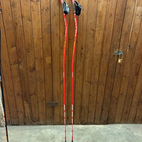 Swix skistaver med korkhåndtak. Staver med reimer og tradisjonelt grep, egnet til langrenn. Passer for bruk i preparerte løyper. Fargekombinasjon med mørke nedre deler og lysere øvre del samt markerte Swix-logoer på skaftet.