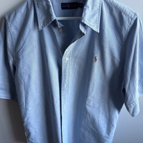 Ralph Lauren skjorte for dame i størrelse XL. Skjorten er blå og laget av bomull. Klassisk modell med krage og knappelukking foran. Passer til hverdagsbruk og kan kombineres med både bukse og skjørt for et enkelt og tidløst uttrykk.