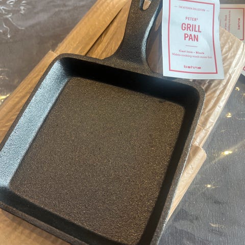 Selger en grillpanne i karbonstål av solid kvalitet fra de Buyer (Carbone Plus-serie). Pannen ble innbrent av meg, og før salg har jeg skrubbet den grundig og fjernet belegget på oversiden av pannen. Selges fordi jeg ikke har brukt den så ofte som jeg hadde tenkt.