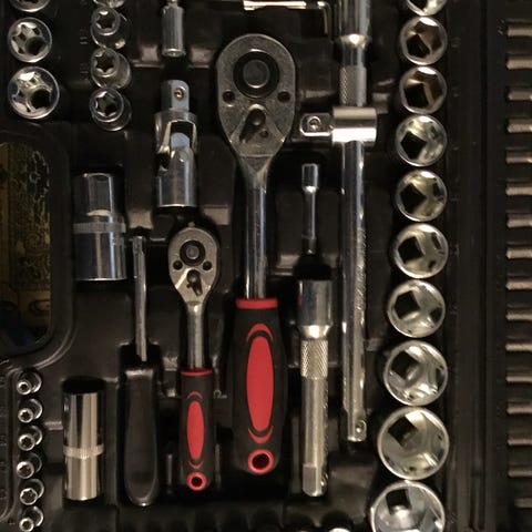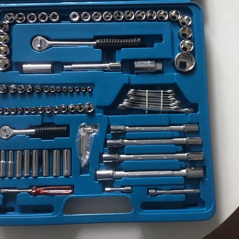 Solid kvalitetsverktøy fra Dowidat (Tyskland). Dette er ikke et komplett pipesett, men et pent og brukbart delsett med kraftig 1/2” skralle (merket 1993) og et utvalg piper i både mm og tommer. Normal bruksslitasje, og noen piper har kosmetiske merker/lett overflate. Selges som avbildet – se bilder for nøyaktige størrelser og hva som følger med.