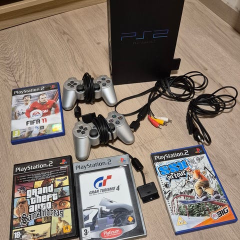 Selger denne chippet ps2en med noen spill og en strømkabel.