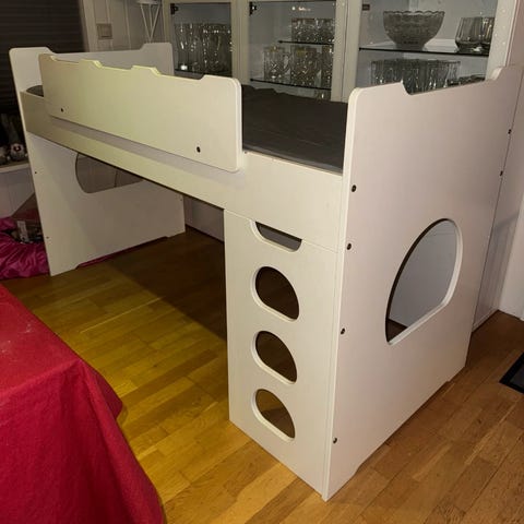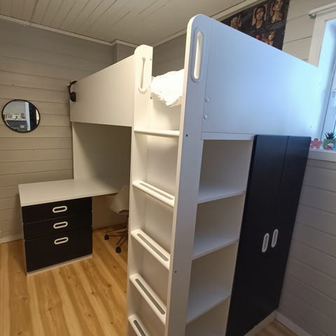 IKEA loftseng med skrivepult og oppbevaring grå/hvit