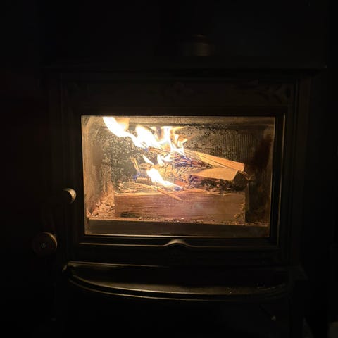 Jøtul I 160 peisinnsats med svart glassfront. Innsatsen er beregnet for innbygging i peis og gir innsyn til flammene gjennom en frontdør i glass.