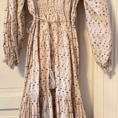 Midikjole fra byTiMo FW23 i myk GOTS-sertifisert bomull. Kjolen har voluminøst skjørt og trekvarts voluminøse ermer med elastiske mansjetter.