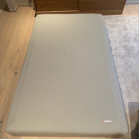 IKEA Skotterud rammemadrass i grå og hvit farge.
