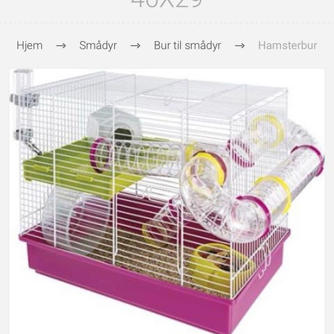 Hamsterbur Karat 100 bur med glassbunn i størrelse ca. 100 x 50 x 61,5 cm. Buret har underdel i glass som gir god plass til strø og graving, samt overdel i metallgitter. Inne i buret er det flere etasjer og ramper i tre som gir dyret mulighet til å bevege seg mellom nivåene. Passer til hamster eller andre små gnagere med tilsvarende plassbehov. Det følger med diverse tilbehør på bildene, blant annet matskåler, hus, og transportbur,. Uåpnet snacks og fôr til hamster, samt strø og sand/badeprodukt til smådyr.