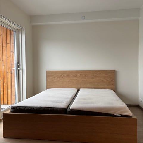 Et stykk støtteben under sengen bør kjøpes ved siden av.