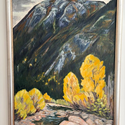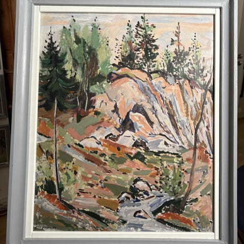 Maleriet er i god stand. Det selges til sju hundre eller bud. Bildet kan ses i Eidsvoll. Jeg kan ta det med til en sentral togstasjon, eller det kan sendes med posten for kr 129,-.
