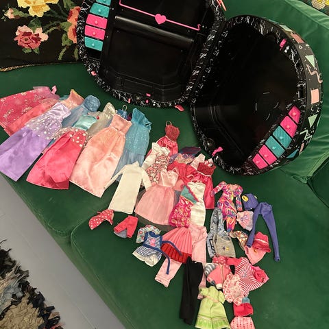 Diverse leker/utstyr selges billig, blant annet barbie bil, barbie skap med noen klær, koffert, sengehimmel fra ikea, sminkespeil .