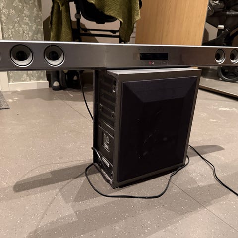 JBL soundbar med trådløs subwoofer i svart utførelse. Systemet består av en lang, slank lydplanke for plassering foran TV-en og en separat subwoofer for dypere bass. Passer til bruk sammen med TV for forbedret lyd ved film, serier og musikkavspilling i stue eller TV-rom.